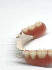 Данный тип протеза фиксируется на собственных зубах пациента с помощью специальных кламмеров (крючков). Применяется в случаях, когда сохранены опорные зубы, способные выдерживать жевательную нагрузку и служить точками крепления.