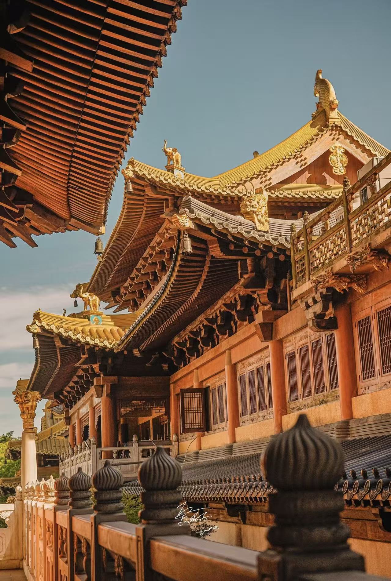 • Галереи внутри храма — игра света и тени, красные стены и золотая черепица создают очень атмосферные кадры.