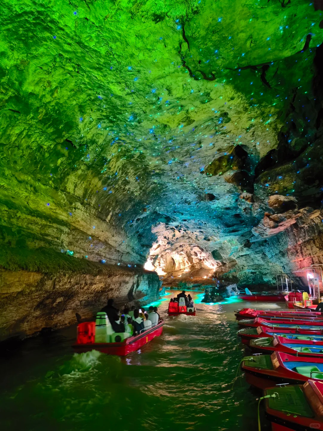 По сравнению со многими другими пещерами, где просто включена цветная подсветка, в Хуанлундуне сделали более современное оформление: свет, звук, визуальные эффекты и атмосферу «дворца дракона». Получается не просто прогулка по пещере, а полноценное подземное шоу.