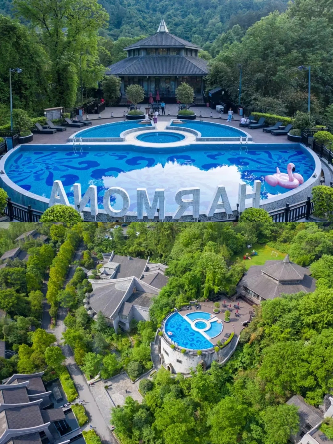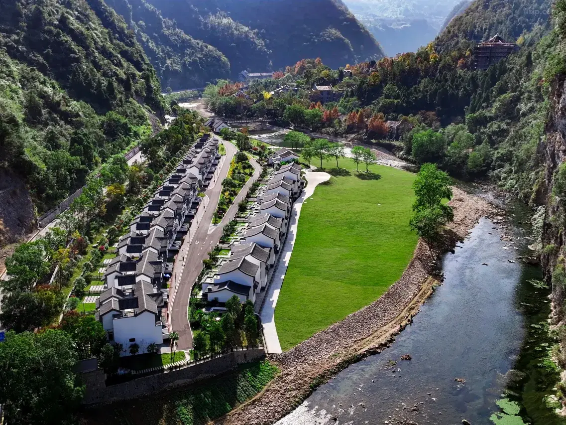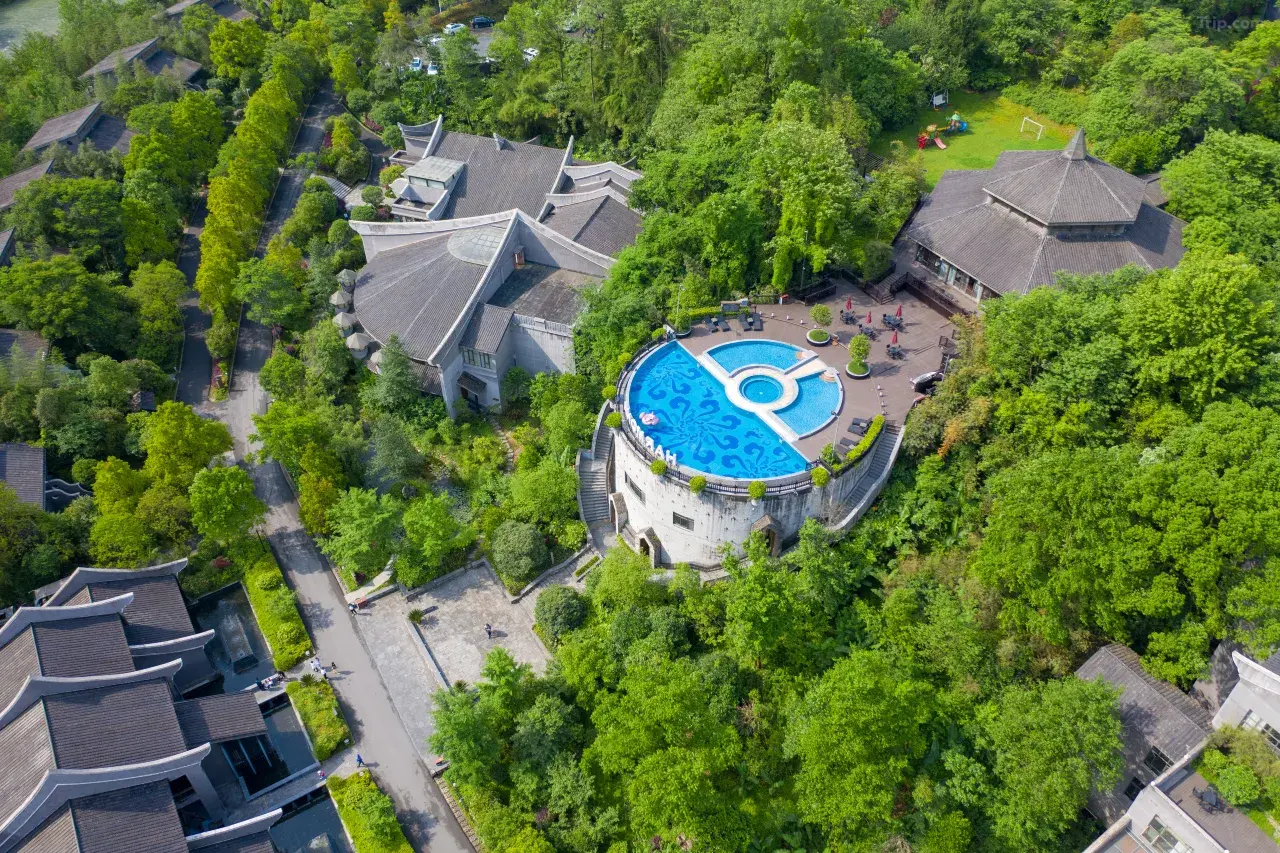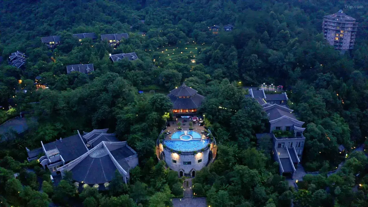 Это не дешёвый отель сети, а пятизвёздочный курортный отель, спрятанный в глубине каньона ✨ Hetianjü — просто божественен! Дизайн в стиле «пяти элементов» воплощает китайскую романтику. Лесной горячий...